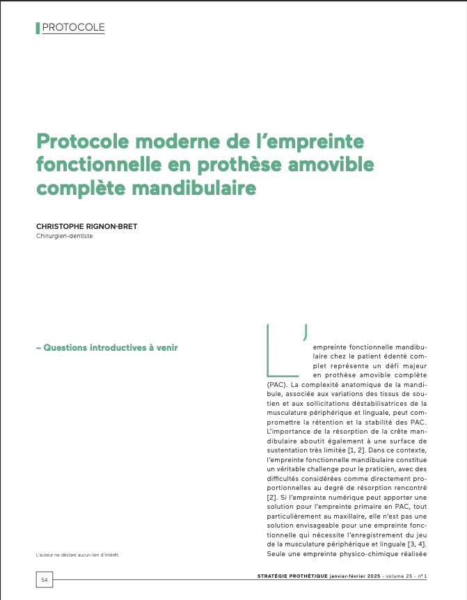 Empreinte simplifiée en prothèse amovible complète
