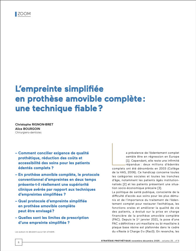 Télécharger l'article : Empreinte simplifiée en prothèse amovible complète Empreinte simplifiée en prothèse amovible complète