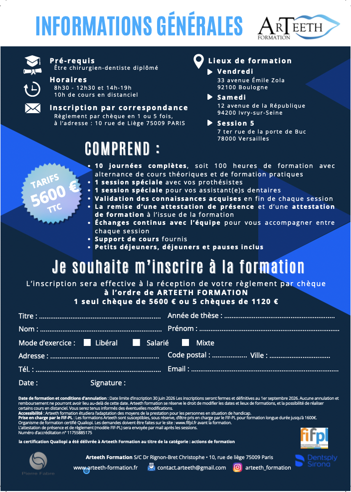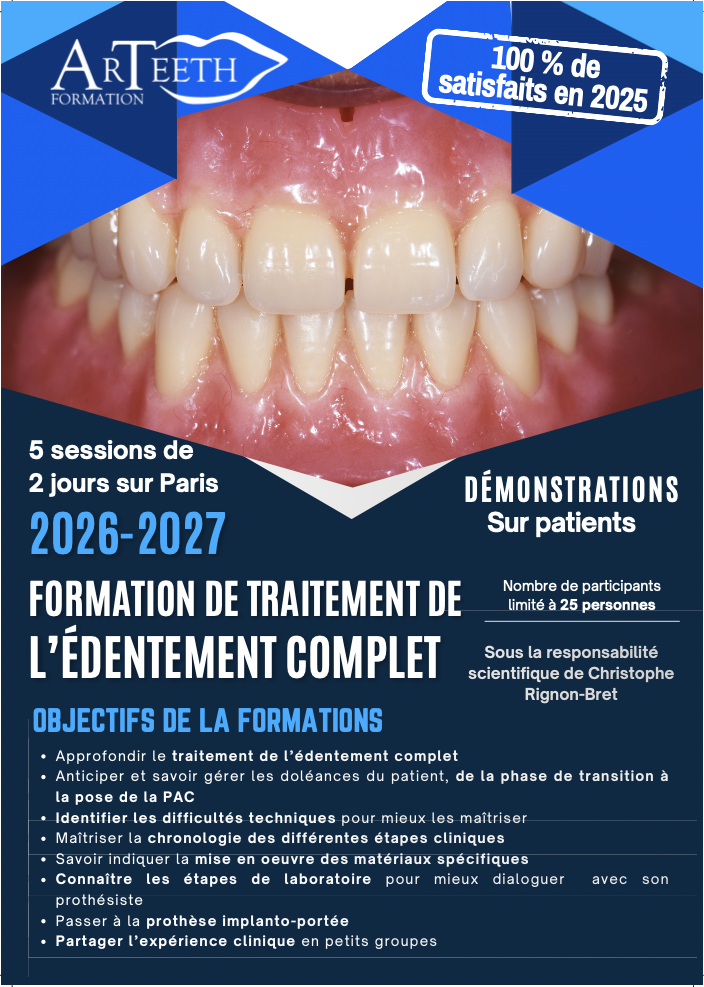 Vous souhaitez participer à la formation de traitement de l'edentement complet sous la direction du Docteur Christophe Rignon-Bret, téléchargez et remplissez le formulaire d'inscription :